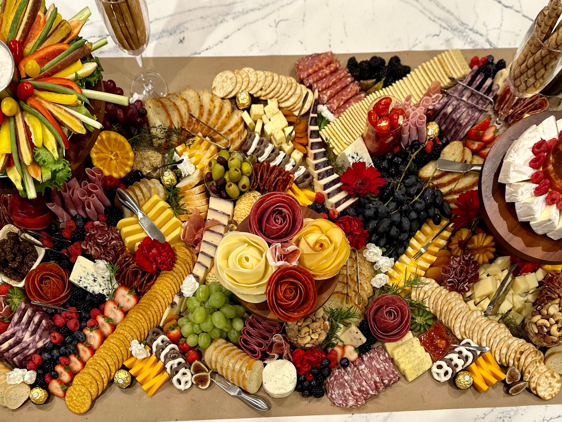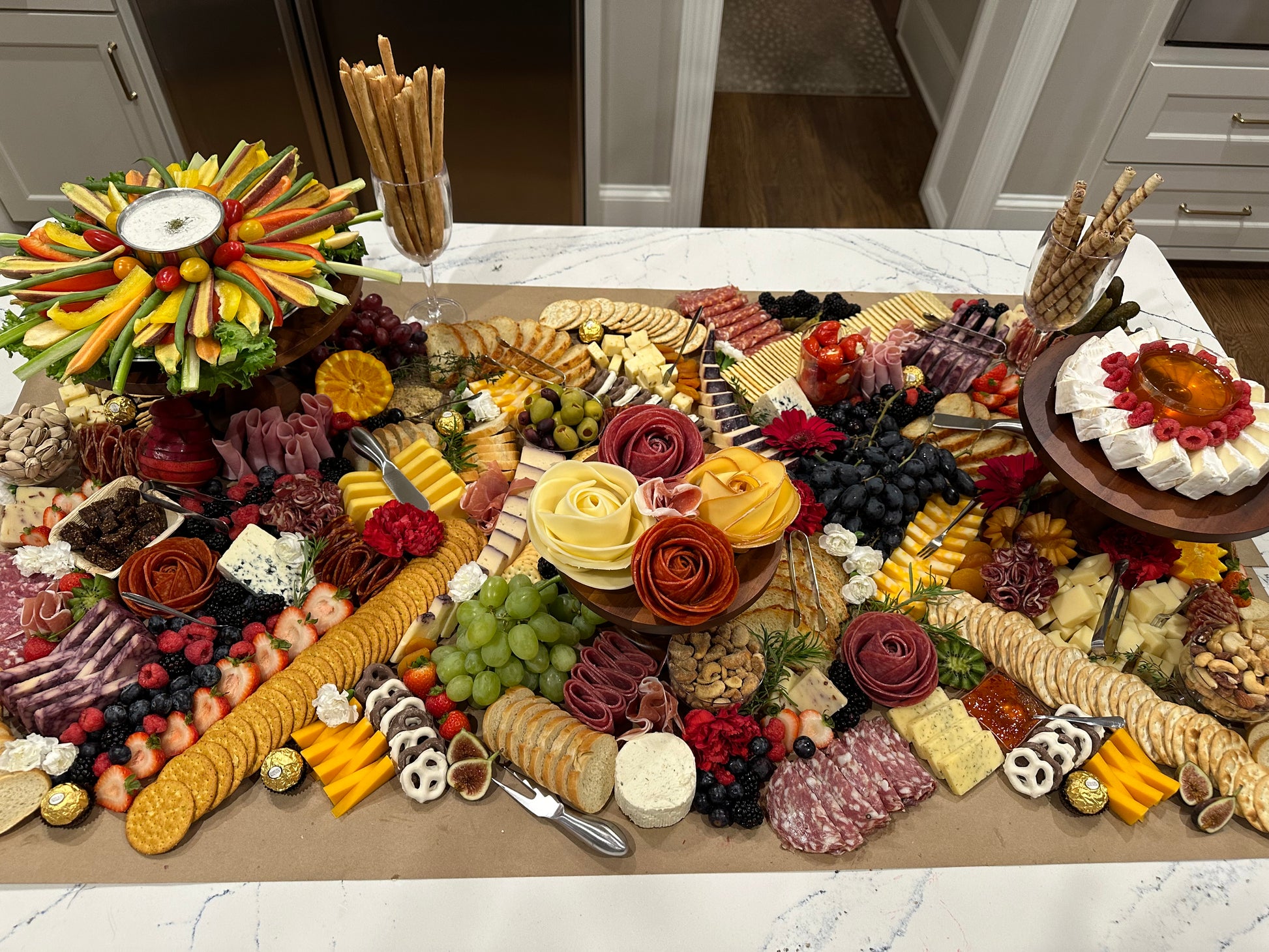 Perfect for weddings, milestone birthdays, corporate events, bridal and baby showers, graduation parties, holiday gatherings, and memorial services, this abundant and beautifully styled graze table adds a touch of luxury and sophistication to any occasion.