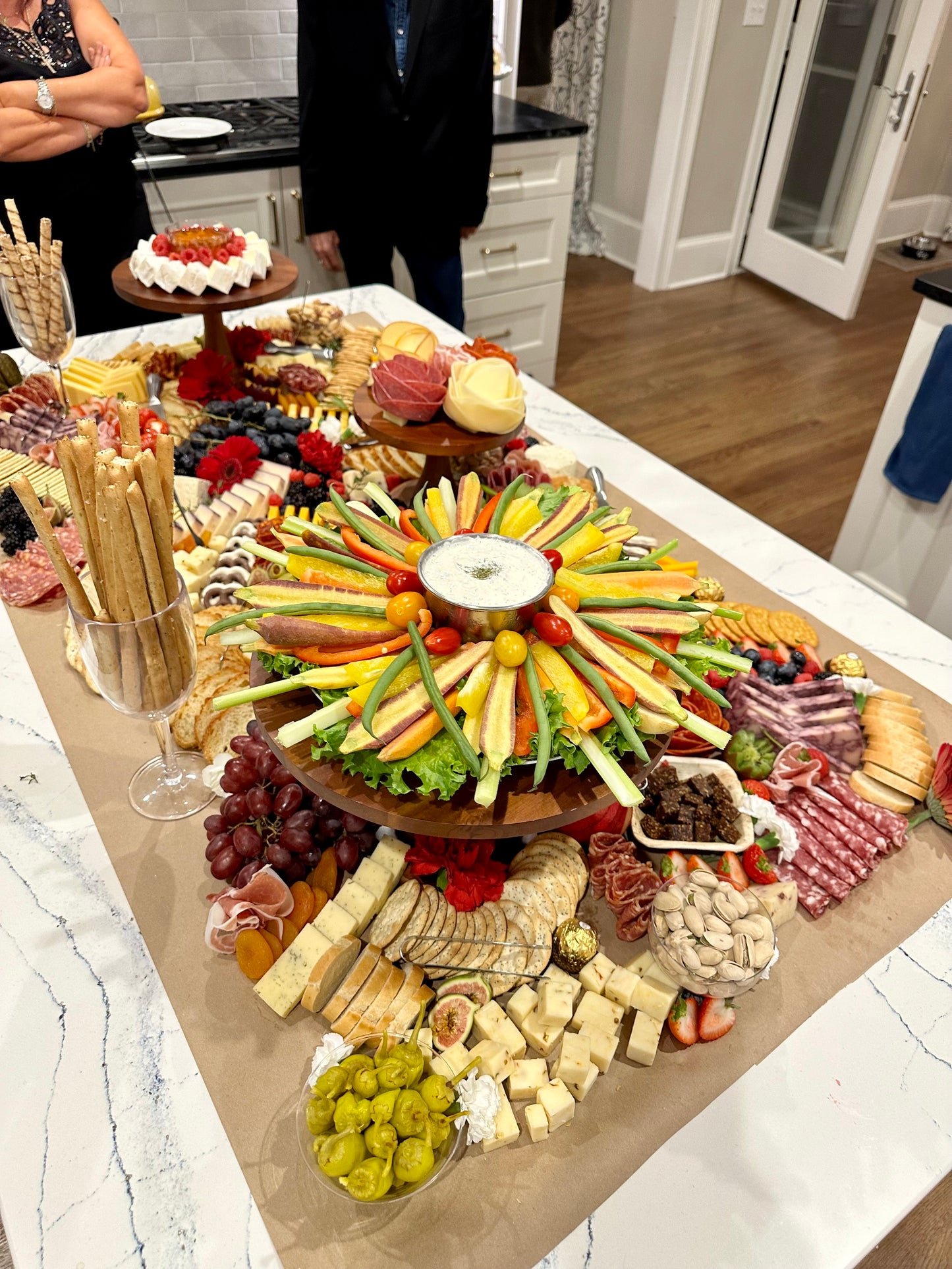 Decorated with seasonal accents, fresh florals, and artistic garnishes, this table creates a striking focal point while offering a delicious variety of flavors and textures. Whether guests are craving something sweet, savory, creamy, or crunchy, the 5ft graze table provides something for everyone.