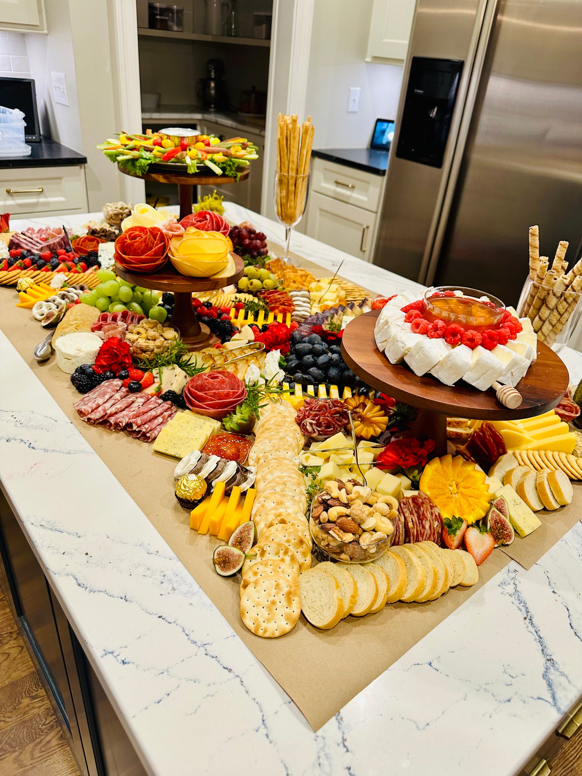 BozaBoards’ 5ft graze table is a grand and visually stunning spread, perfect for larger gatherings that demand both elegance and indulgence. Designed to serve a crowd, this table features a generous selection of artisan cheeses, gourmet cured meats, fresh and dried fruits, nuts, olives, honey, specialty dips, and an assortment of crackers and fresh bread.