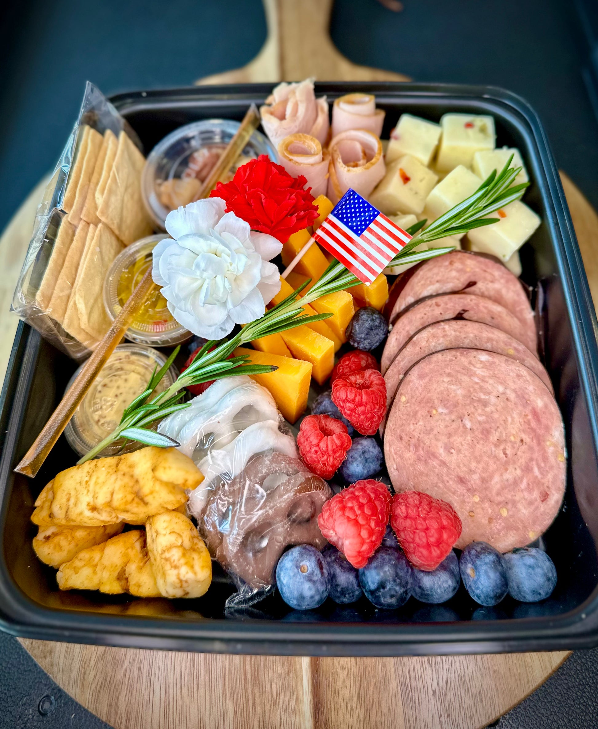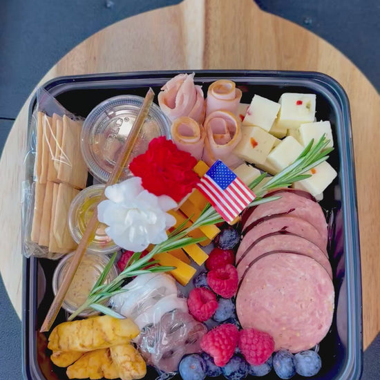 Inspired by early settlers who blended Old World curing with New World abundance, this board pairs preserved meats, sturdy crackers, and bold cheeses with sweet fruit and treats β the kind of practical, shareable spread made for long days and good company.
