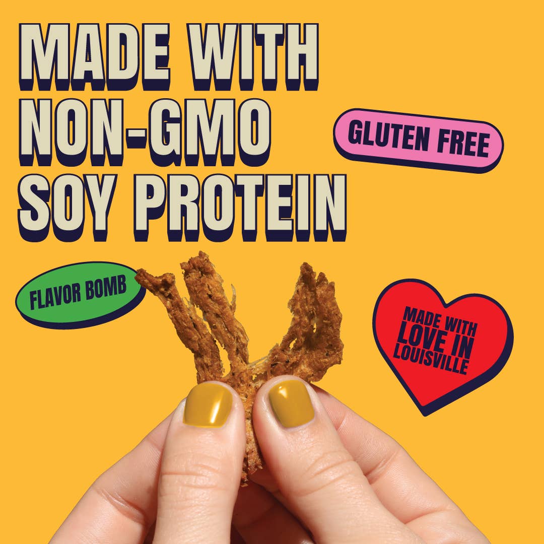 Louisville Vegan Jerky’s Smoky Carolina BBQ vegan jerky is marinated with sweet & tangy barbecue flavors. The seasonings are delicately balanced for an authentic Carolina BBQ flavor.