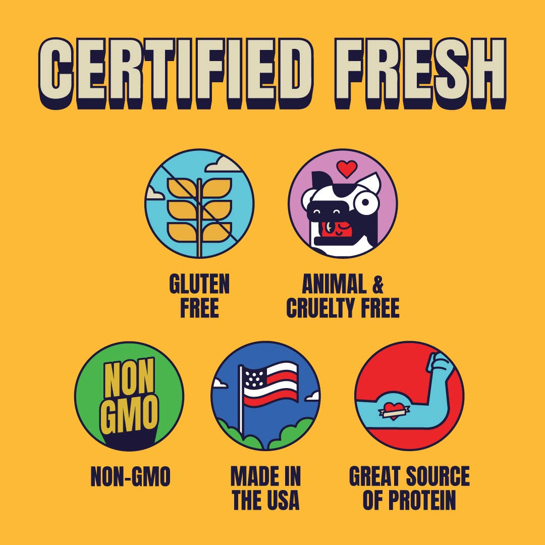 Certified Gluten Free, Non-GMO Verified, Certified Vegan, Made in the USA.